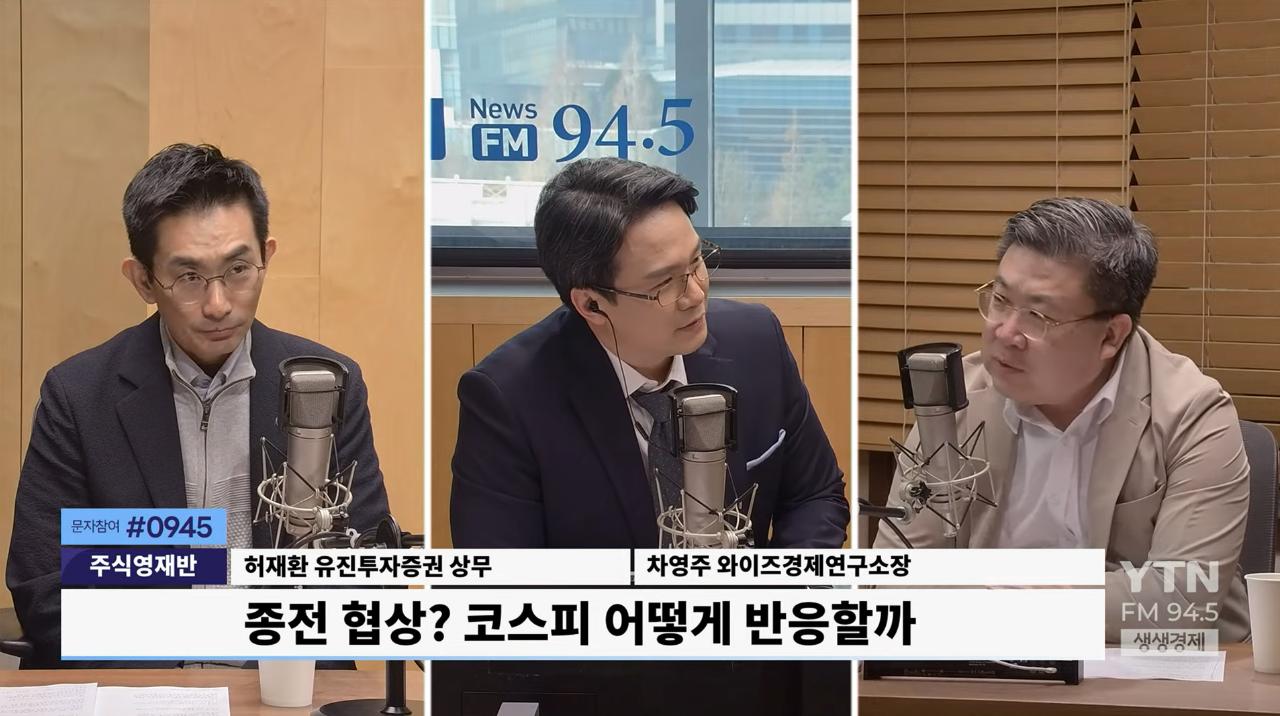 ◆ 조태현 : 네, 미국과 이란이 종전 협상에 나설 수 있다라는 소식이 전해지면서 간밤에 뉴욕 증시가 일제히 반등을 했습니다. 우리 증시는 일단 장 초반에 하락세로 출발했어요. 이런 상황 속에서 그런데 문제라면 이 휴전이 어떻게 될지 아직은 불확실하다는 점이겠죠. 이란은 미국 측의 종전안에 대해서 일단 거절을 했습니다. 그렇기 때문에 오름 폭이 그렇게 크지는 못했던 분위기고요. 이란 전쟁이 정말 끝나게 될지, 어떤 전환의 계기를 맞을 수 있을지 아직 불확실한 점이 굉장히 크다고 봐야 될 텐데요. 그래서 투자자분들도 안개 속을 걷는 심정일 것 같습니다. 그럴 때는 이렇게 투자 전략, 두 전문가와 함께 알아봐야겠죠. 목요일 코너입니다. 영재반의 영, 차영주 와이즈경제연구소장, 재, 허재환 유진투자증권 상무 두 분과 함께 하도록 하겠습니다. 어서 오십시오.